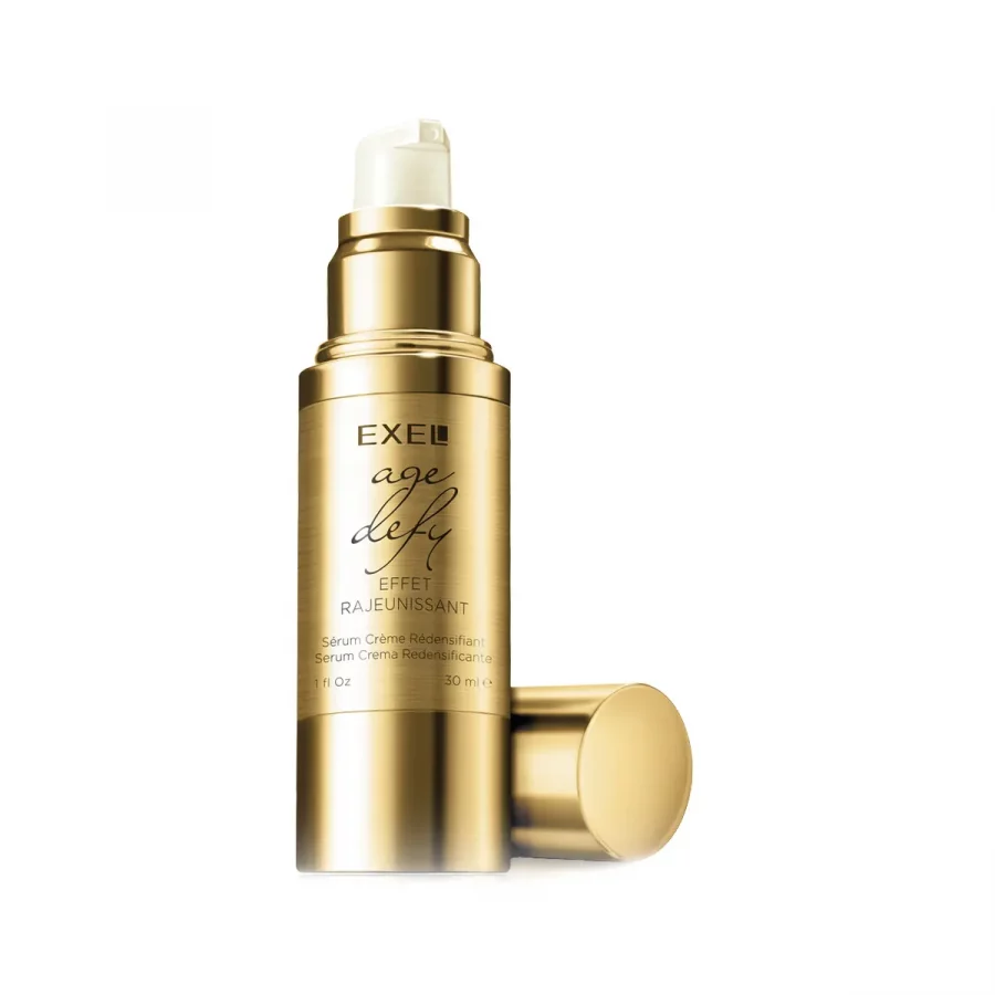 Serum crema de la línea Age Defy con efecto redensificante y re-estructurante de la matriz dérmica que refuerza la función barrera compensando el deterioro del paso del tiempo que ayuda a prevenir arrugas con una intensa acción antioxidante y estimular el funcionamiento celular.